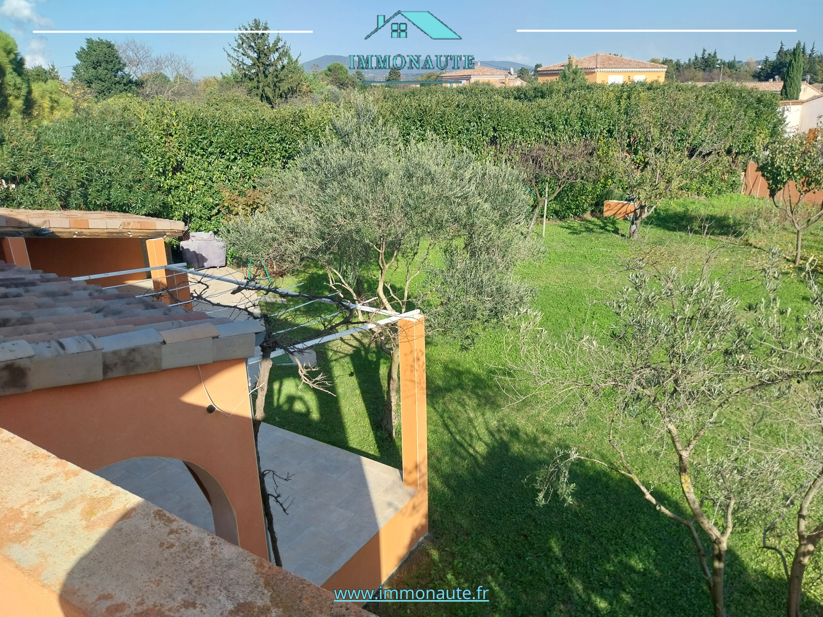Celui-ci dispose d'une belle piscine ensoleillée et d'une surface de 1200m² "environ.