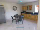 Le séjour gorgé de lumière est séparé d'une grande cuisine aménagée et équipée avec vue sur le jardin complétement arboré et clot.