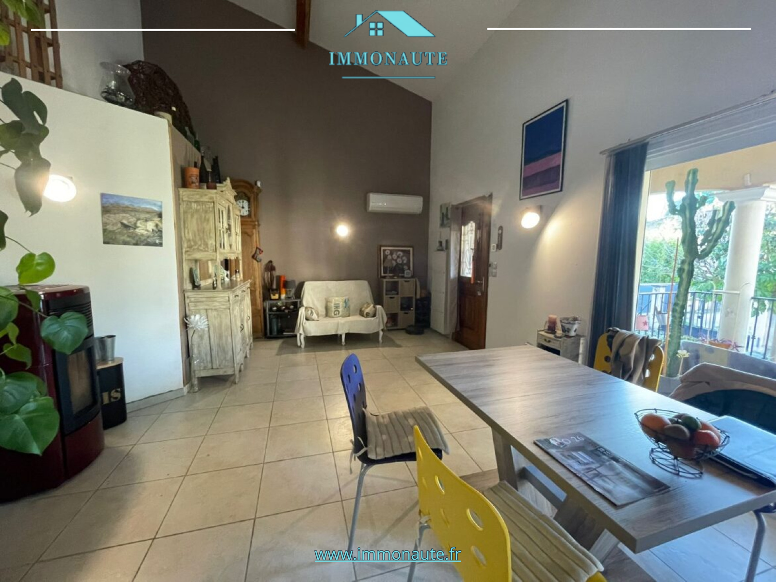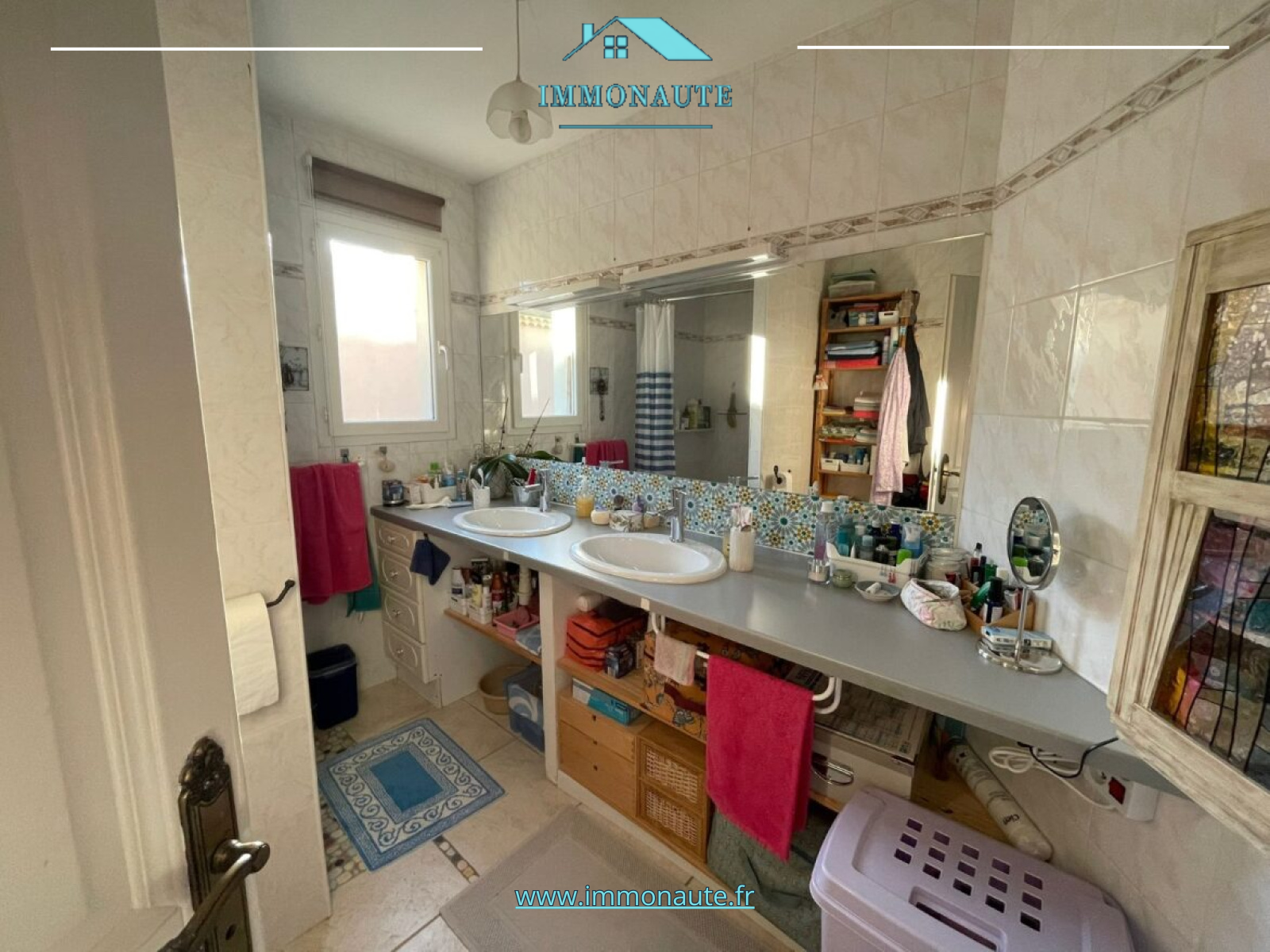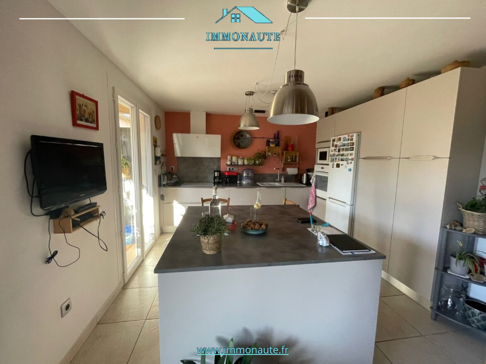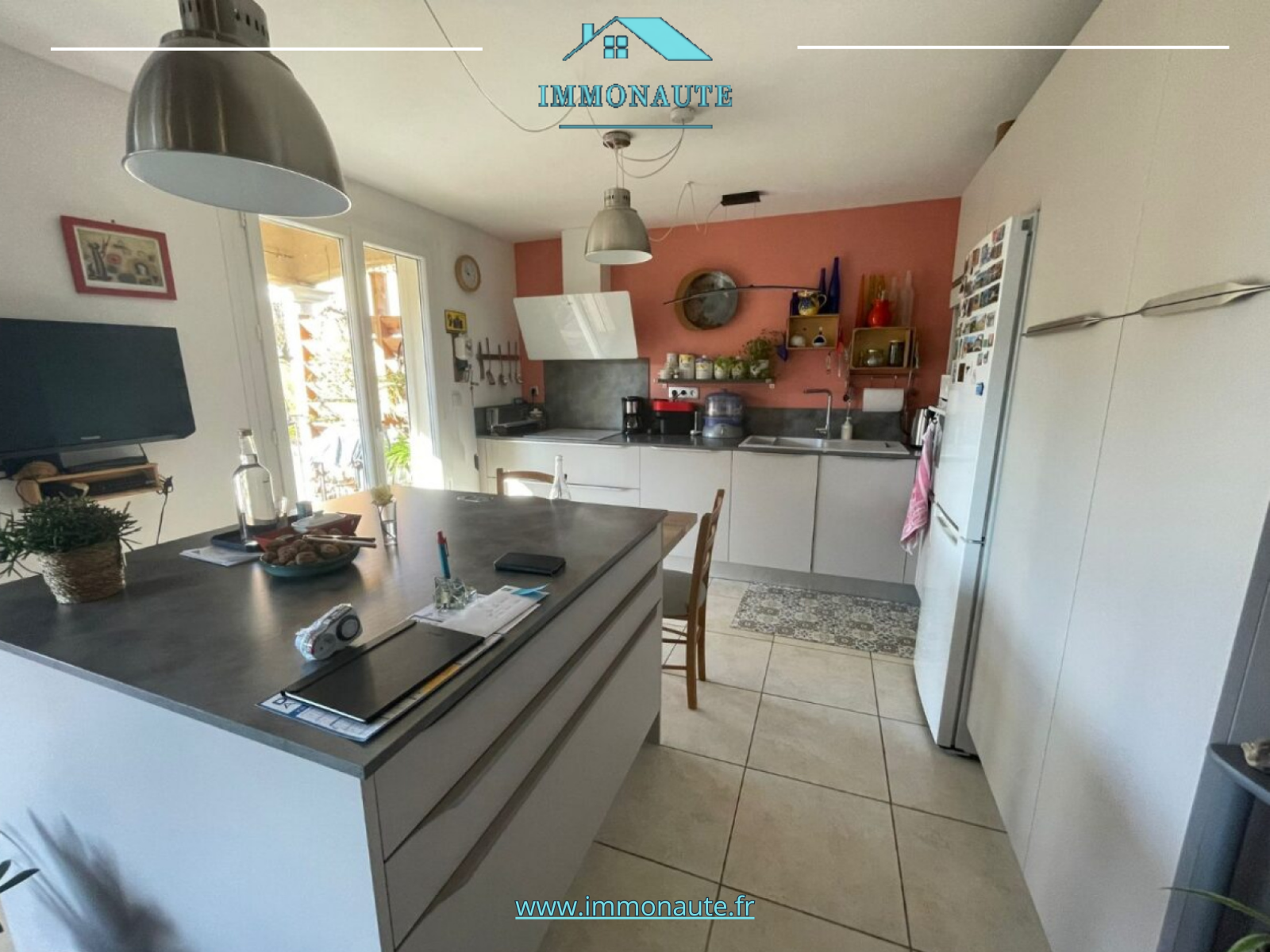 Maison 5 pièces 105 m² Montélimar de 2003 rénovée, 3 chambres dont une suite parentale, cuisine aménagée équipée ARTHUR BONNET ouverte sur une belle pièce de vie très lumineuse avec poêle à granulés, salle d'eau avec douche + double vasque, volet roulant, le tout sur une parcelle close de 521 m² sous vide sanitaire.